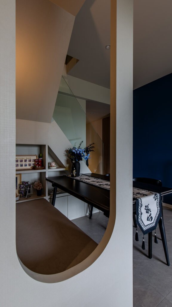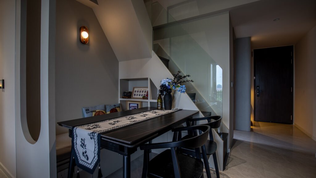 The dining area, cleverly crafted beneath the loft stairs, became one of the most charming highlights of the home. Initially thought to be an unusable space, it was transformed into a cosy and intimate corner perfect for daily meals or quiet gatherings. With warm lighting and tailored carpentry, this thoughtful design turned a challenging layout into a unique feature that adds both functionality and character to the home.
