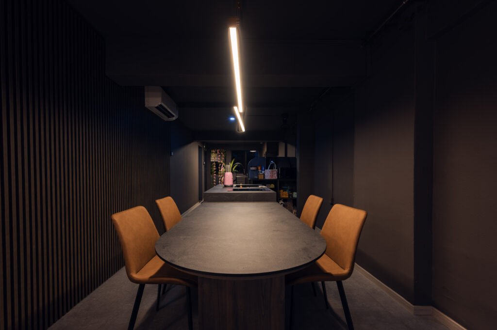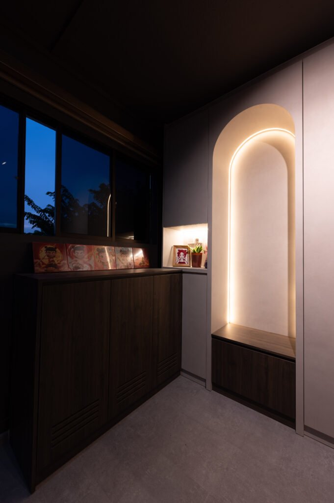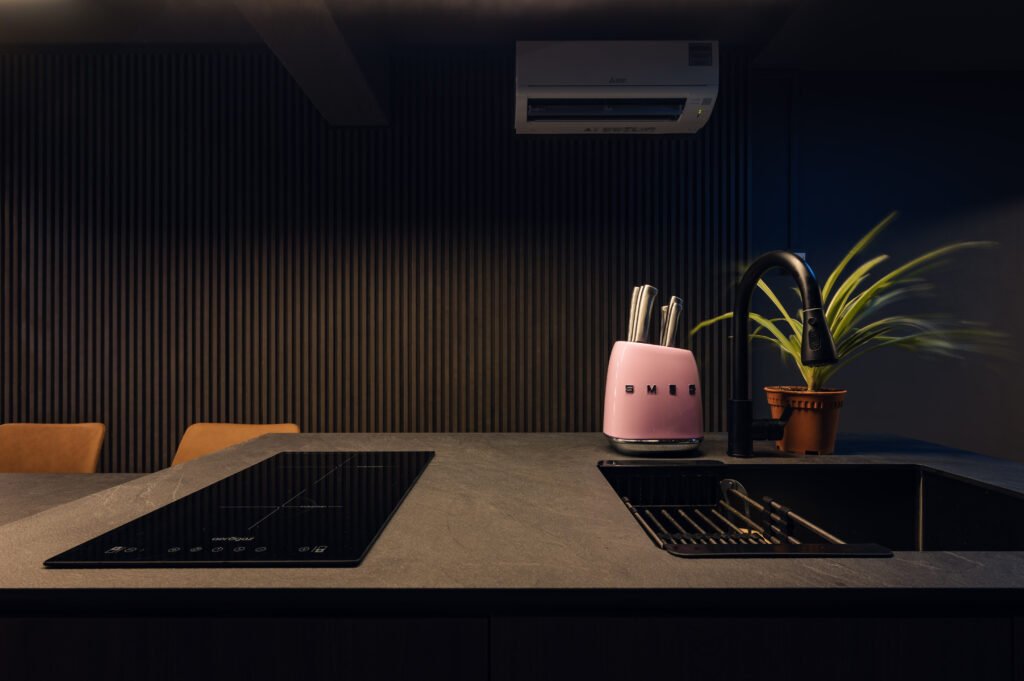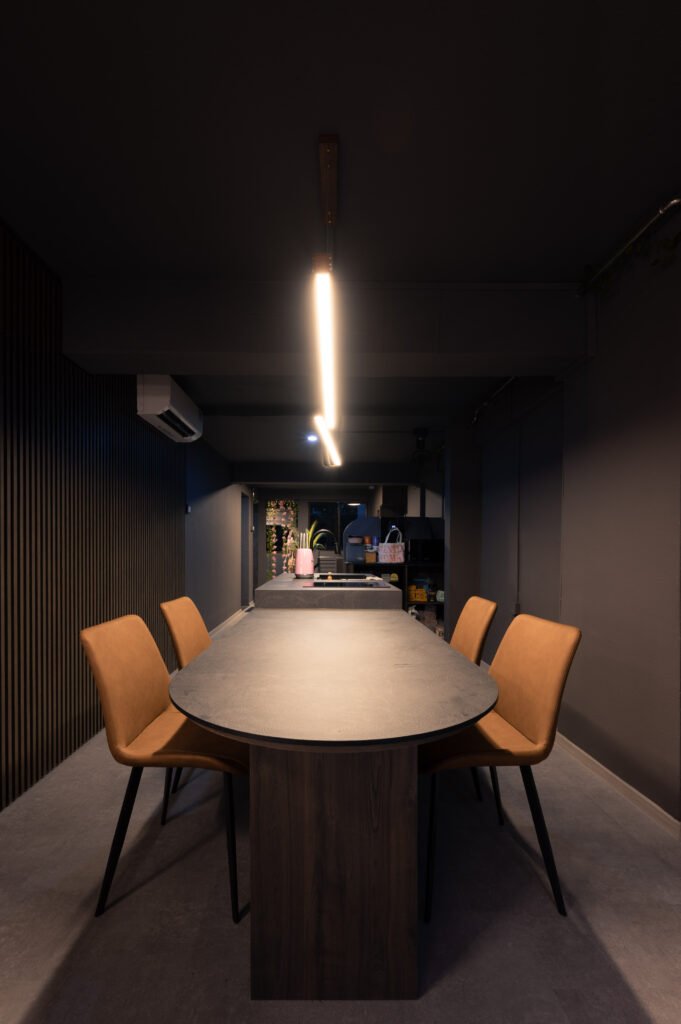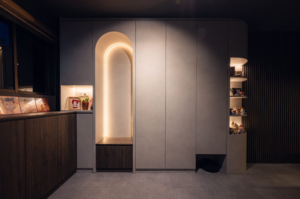 This home embodies bold industrial elegance, defined by dark grey tones, textured finishes, and warm wood accents. The open-concept washrooms add a touch of modern uniqueness, blending seamlessly into the overall design for a cohesive, loft-inspired feel. Subtle lighting and fluted panels soften the rugged aesthetic, creating a perfect balance between raw character and refined comfort.